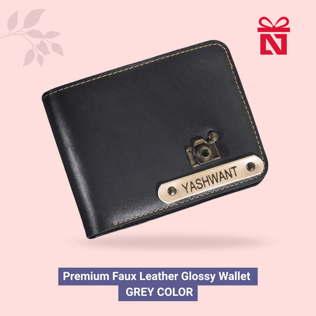 Grey Premium Faux Leather Glossy Wallet For Men Personalized For Style
